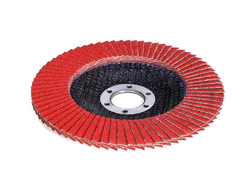 百叶轮(百页轮)称为强力弹性磨盘,是由塑料或纤维网盖粘和砂布页片而成。叶轮基体有网布、尼龙、塑料、钢纸等,页片多少不等,呈扇形均匀分布。粒度36#-400#,以60#、80#较常见,用于焊缝、正边毛刺的打磨及修磨...